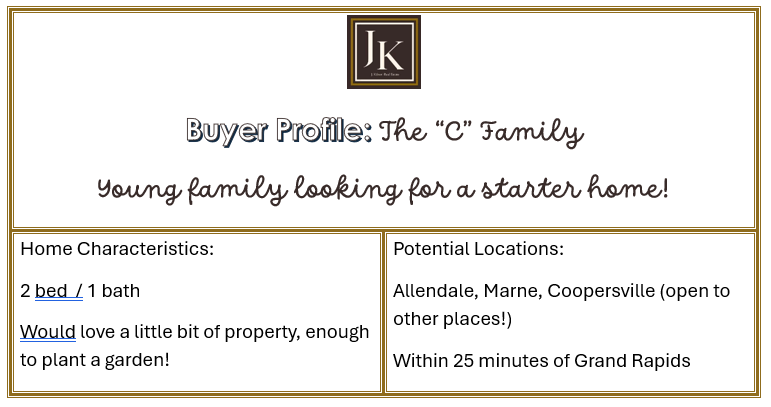 Featured Buyer: The “C” family Mar 11 Written By Joseph Kilner TEXT US IF YOU HAVE A HOME THAT FITS THIS PROFILE Joseph Kilner
